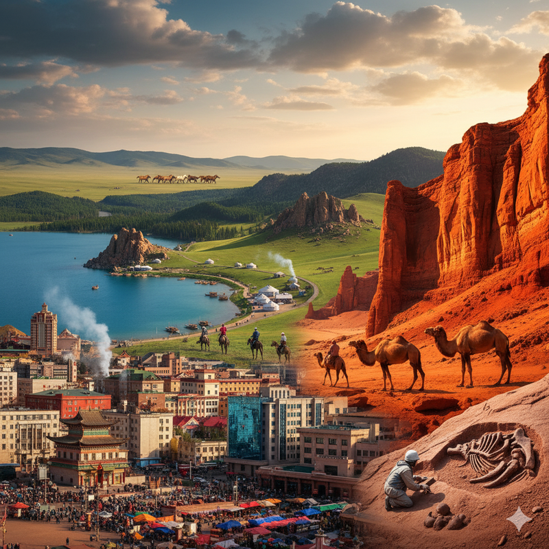 The capital city combines Soviet-era architecture with modern developments. Key attractions include Gandan Monastery, the National Museum of Mongolia, and the bustling Naran Tuul Market. - Gobi Desert